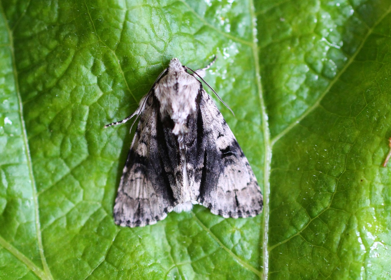 Nightfall. A gentle shift from light to dark. The Alder Moth (Acronicta alni) is not a moth that flies at dusk but the Latin name implies that it might – acronicta means nightfall. Each moth species seen for the first time (this is number 334 for Shandy Hall) emphasises the extraordinary beauty of these insects. The markings on the wings of the Alder Moth are as complex and interwoven as the mirror patterns of a Rorschach test. This moth was a real joy to see in the drizzling dawn.